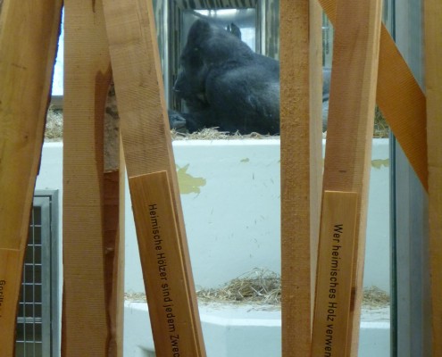 Der Tiergarten Nürnberg hat das Affenhaus unter Verwendung von verschiedenen Holzarten mit Holz von Hier Nachweis umgebaut. Zudem wurden die Einflussfaktoren auf die Gorillapopulationen diedaktisch aufbereitet und darüber informiert, was der Besucher für den Schutz der Gorillas tun kann – z.B. Produkte mit Holz von Hier Zertifikat nachfragen.